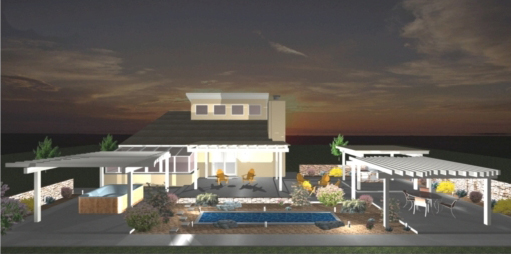 Outdoor design features can be difficult to visualize. The 3d visual model shown above provides a realistic example of the re-designed patio, landscape and portico features in a way that using only 2d plans and details simply cannot.